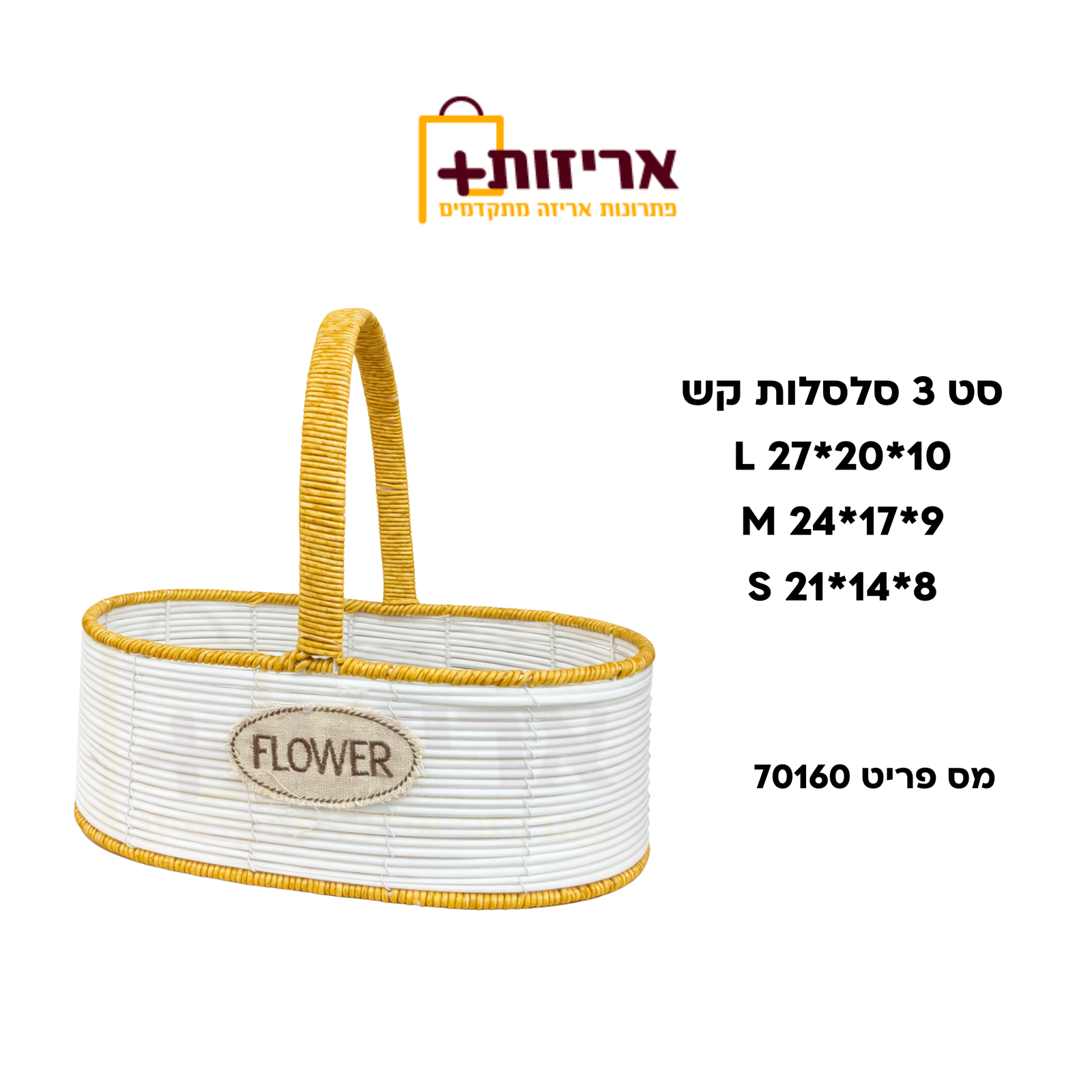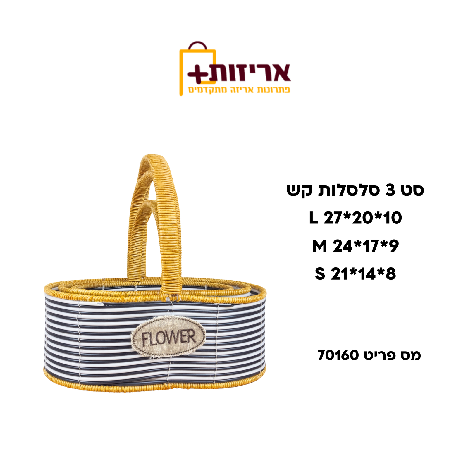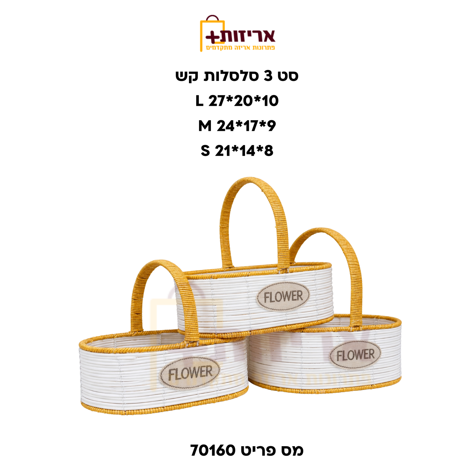 מידות: L 27/20+10 / M 24/17+9 / S 21/14+8 ס"מ