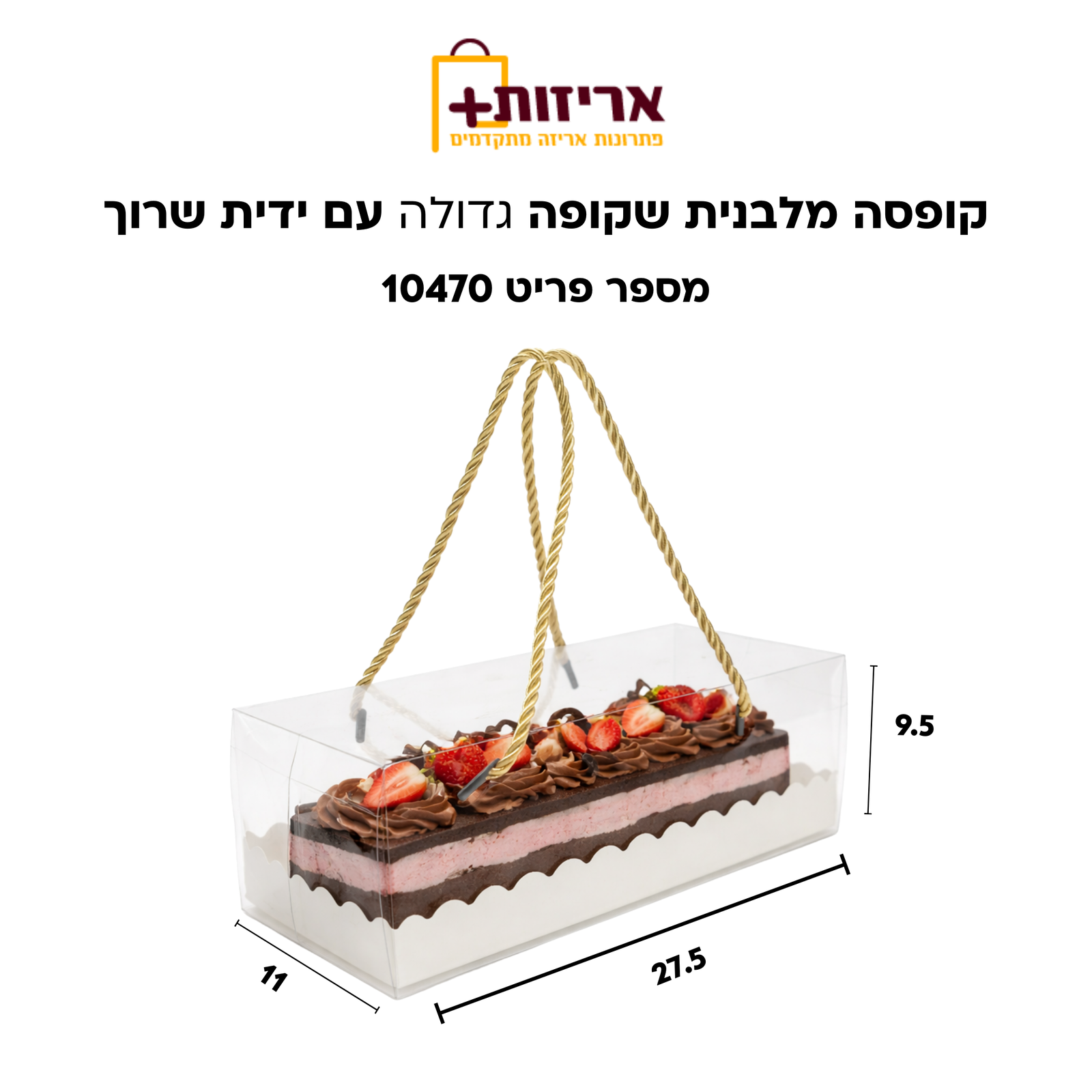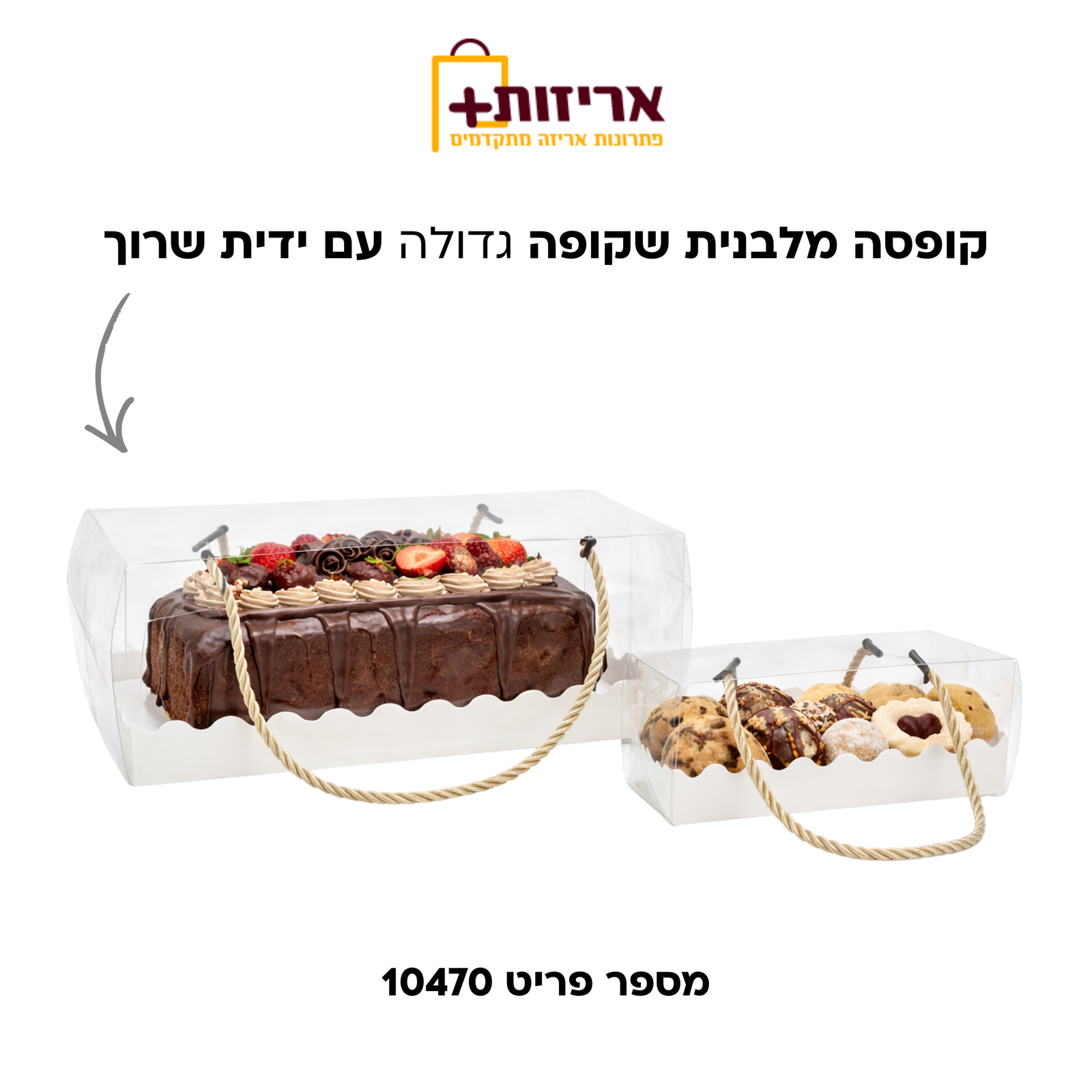 קופסה מלבנית שקופה גדולה עם ידיות שרוך