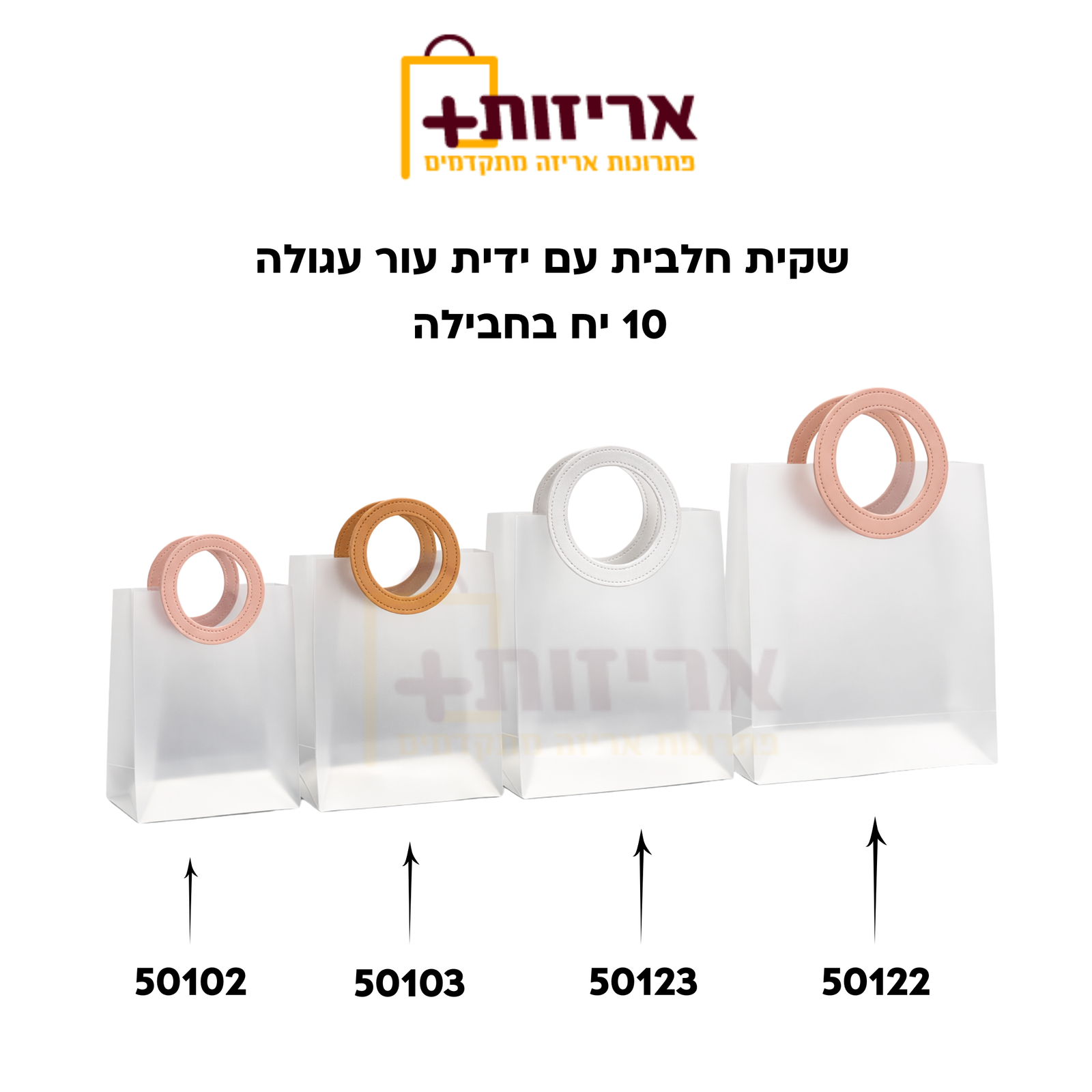 שקית PVC חלבית עם ידית עור עגולה קטנה